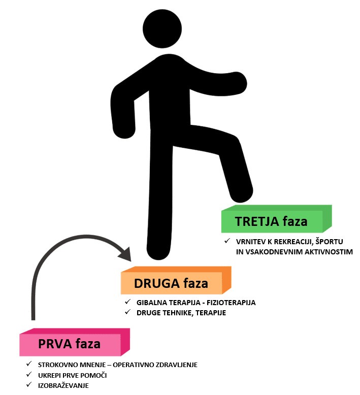 Povrnitev gibljivosti: Cilj te faze je, da se sklep spet giblje prosto in brez bolečine ob premikih telesa.