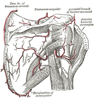 - A. suprascapularis: Oskrbuje mišici M. supraspinatus in M. infraspinatus.
